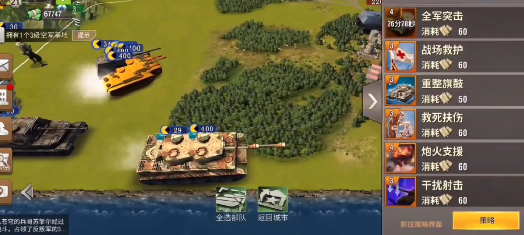 部队的组建和科技研究决定了你的扩张与防守能力。前期利用任务奖励的军备,可以快速组建以轻型坦克和反坦克炮为主的机动部队。兵种科技的研究不能忽视,优先提升步兵强化和雷达站等基础科技,步兵在前期性价比很高,而雷达站能扩大视野让你提前预判敌情。中后期则要重点发展重型坦克和攻城炮等高级单位,形成能抗能打的组合。在作战时要注意兵种配合与地形利用,例如让坦克在前排吸收伤害,保护后排脆弱的炮兵单位,将步兵或炮兵部署在森林地形中能获得显著的攻击加成。